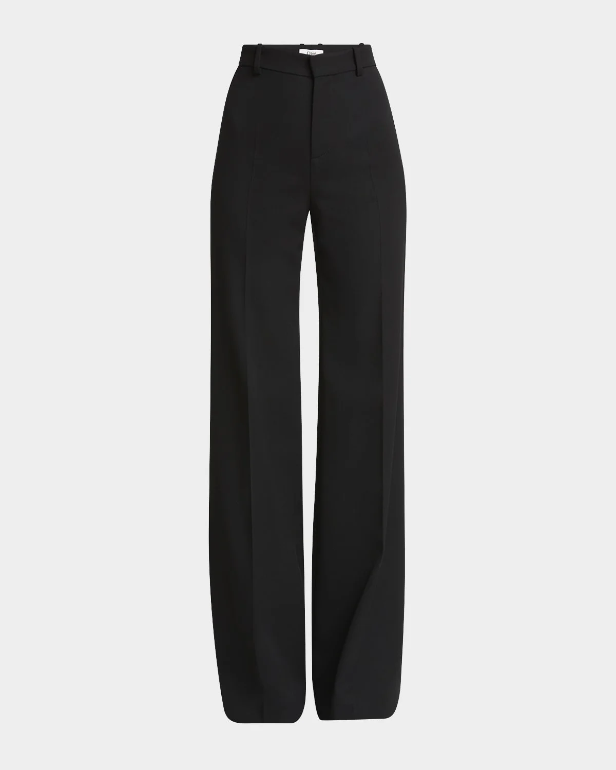 - Chloe tailored trousers in wool grain de poudre - High rise - Flat front - Back welt pockets - Flared legs - Full length - Hook/zip fly; belt loops - Wool - Lining: Silk - Made in Australia
