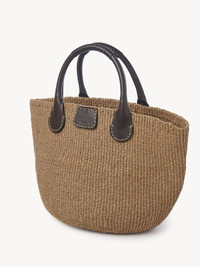 Designed in collaboration with the iconic Parisian swimwear brand ERES, this "Palma" large basket is a beach essential crafted from fair-trade paper and calfskin. The roomy main compartment includes a pouch detailed with a metallic C, attached to the bag with a leather tie. A leather patch insides features the Chloé x ERES signature, finishing this timeless, elegant bag. This basket was made in partnership with Mifuko, a certified WFTO supplier. In Swahili, “mifuko” means pocket. With fair pay and less dependence on unpredictable farming as a source of income, Mifuko empowers its artisans in Kenya and ensures no one is left with empty pockets. PRODUCT DETAILS Large basket in fair-trade paper & calfskin Carry: arm - Top handle - 1 main compartment - 1 inside pouch with a C metallic piece, attached to the bag with a leather tie Comes with a dust bag - Width: 19.7" (50 cm) - Height: 11.8" (30 cm) - Depth: 11.8” (30 cm) - Handle drop: 5.1" (13 cm) This basket bag has been carefully threaded with natural fibers by master artisans. Each piece has been carefully selected for its natural beauty. Any irregularities and color variations are inherent to this kind of natural fiber and a result of artisanal finishing. Protection from direct light, heat and rain is advised. Should the item become wet, dry it immediately with a soft cloth. Due to its slightly abrasive surface, we advise you to avoid contact with delicate materials. Avoid intense rubbing with abrasive materials. Fill the bag with tissue paper to help maintain its shape and store in the provided dust bag. Leather parts can be cleaned using a soft and dry cloth. Color: Somber Brown Item code: CHC23US163K11232