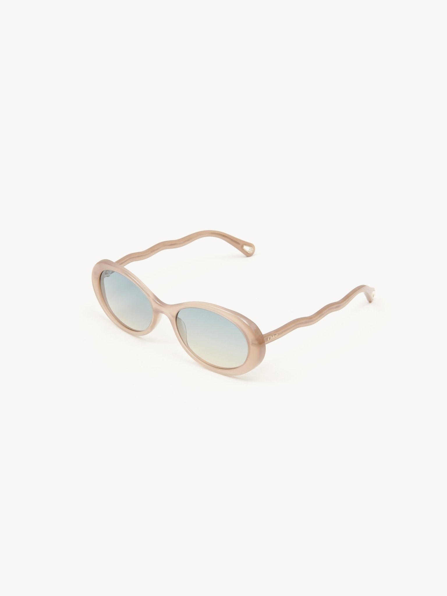 With their feminine and easy-to-wear style, the Zelie sunglasses for ladies are great to pair with any look. A classic oval shape combined with signature Chloé scalloping on the temples give this piece an iconic twist. These sunglasses for women feature drop-shaped openings embellished with the Chloé logo, allowing them to be accessorized with Chloé's eyewear jewelry. PRODUCT DETAILS Oval sunglasses for women in bio-based material - 100% UVA and UVB protection - Chloé logo engraved on the left temple - Can be accessorized with all eyewear jewels These sunglasses for ladies come with a case and lens cloth - Lens: 2.4" (60 mm) - Bridge: 0.6" (16 mm) - Temple: 5.7" (145 mm) - Opal brown nude frame - Double gradient petrol/nude lenses Item code: CHC22SEK0088905