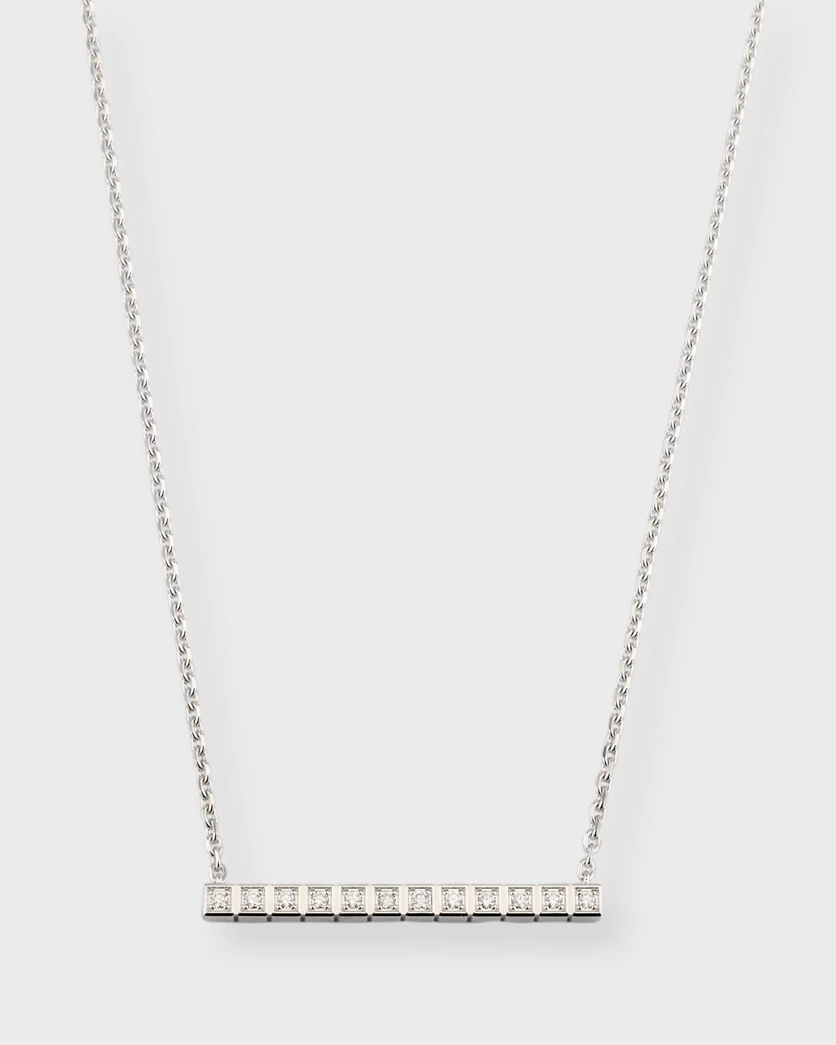 - Ice Cube necklace by Chopard - Polished 18-karat white gold - Integrated bar with blocks - 0.12 total diamond carat weight - Lobster clasp - Made in Germany