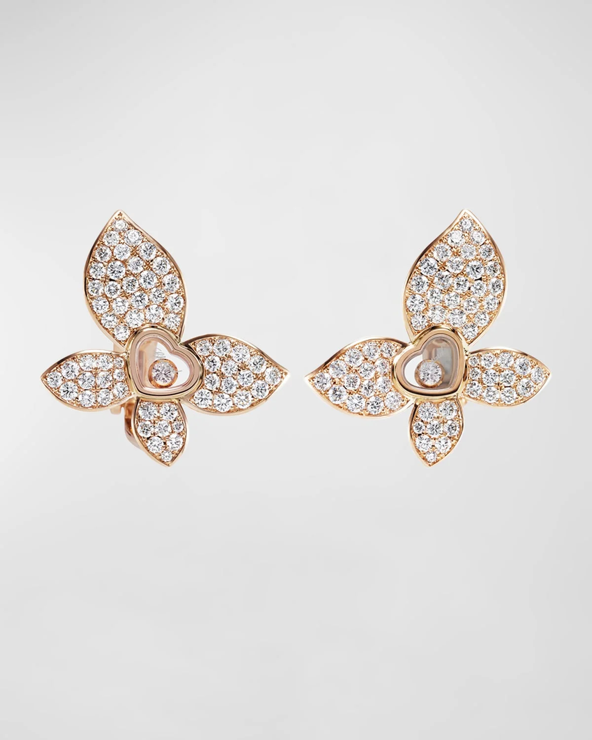 - The collaboration between music icon Mariah Carey and Chopard brings to life light, delicate jewelry inspired by butterflies. Little Diamonds Do Great Things. - Chopard x Mariah Carey "Happy Butterfly" earrings - 18-karat rose gold - 1.78 total diamond carat weight - For pierced ears - Made in Germany - Care Instructions: - Wash with a non-chemical liquid soap. Rinse piece under water, avoiding any stones. - Chopard Style # 848536-5001