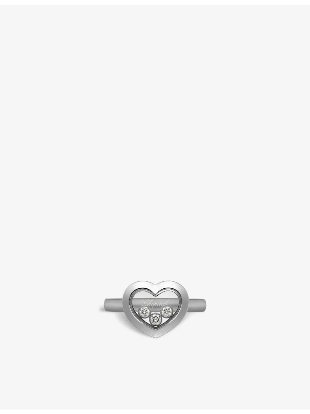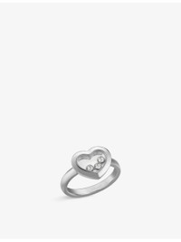 PRODUCT DETAILS - Chopard 18ct white-gold and 0.15ct diamond ring - 18ct white gold - Three white diamonds - Slips on - Brand engraved at centre, heart shaped - Carat weight: 0.15ct - Carat cut: round brilliant - Carat clarity: IF - Two year manufacturer's warranty - Please use a soft, dry polishing cloth - Please note – this piece has been certified in accordance with the Hallmarking Act 1973 Ref: R03709689