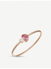 PRODUCT DETAILS - Chopard 18ct rose-gold, 0.05ct diamond and mother-of-pearl bangle bracelet - 18-carat rose gold - Diamonds - Mother-of-pearl - Slips on - 33 diamonds, open-ended design, heart-shaped charm with single moving diamond, heart-shaped charm set with mother-of-pearl stone, logo embossed - Made in Germany - Carat weight: 0.05ct - Carat cut: round brilliant - Carat clarity: IF - Please refer to the brand’s care instructions - Please note – this piece has been certified in accordance with the Hallmarking Act 1973 Ref: R03769956