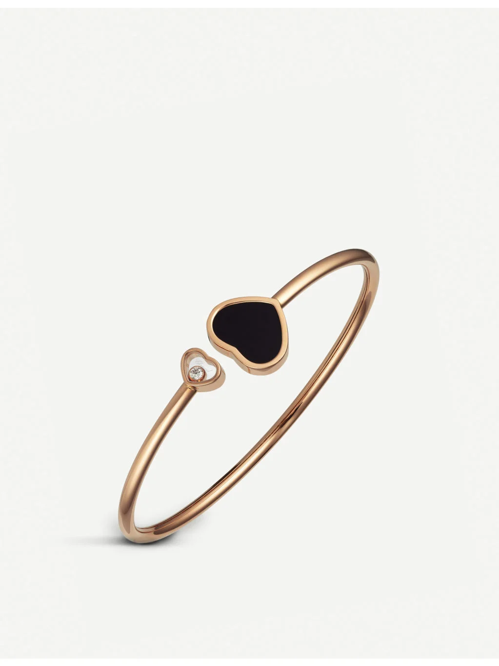 Happy Hearts 18ct rose-gold, onyx and diamond bangle bracelet
