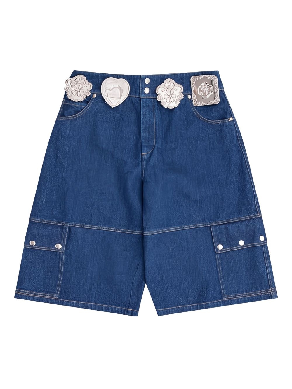 low-rise denim shorts Highlights - Indigo blue - Press-stud fastening - Classic five pockets - Two side slash pockets - Contrast stitching Imported Composition Cotton 100%