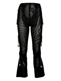 chain-embellished mesh flared trousers Highlights - Black - Mesh fabric - Flared leg - Chain detailing - Heart-shaped charms - Gathered Imported Composition Fabric 100% SIZE & FIT Model measurements Height 5 ft 10 in(1.78 m) Bust/Chest 31.49 in(80 cm) Hips 37 in(94 cm) Waist 23.62 in(60 cm)