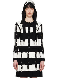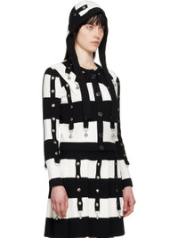 Knit viscose-blend cardigan. Stripes and rib-knit trim with studs, D-rings, and charms throughout. · Crewneck and spread collar · Button closure Supplier color: Black/Cream 70% viscose, 30% polyester. Made in Bulgaria 251529F097003