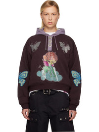 Recycled cotton-blend fleece hoodie. · Drawstring at hood · Three-button placket · Crystal-cut graphics at chest · Seam pockets · Rib-knit hem and cuffs · Graphic patch with check pattern at elbows Supplier color: Brown multi Body: 72% recycled cotton, 13% tencel, 7% recycled lyocell, 5% other fibres, 3% recycled linen. Trim: 99% cotton, 1% elastane. Made in Bulgaria 252529F097000