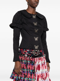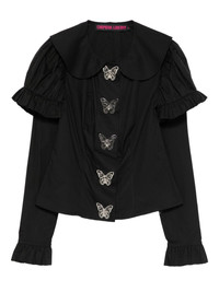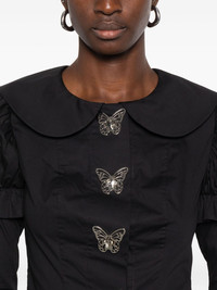 butterfly-embellished ruffled shirt Highlights - Black - Butterfly embellishment - Ruffled trim - Peter pan collar - Front button fastening - Long sleeves Imported Composition BCI Cotton 100% SIZE & FIT Model measurements Height 5 ft 10 in(1.77 m) Bust/Chest 32.28 in(82 cm) Hips 35.03 in(89 cm) Waist 25.19 in(64 cm) Washing instructions Read Manufacturer Guidelines