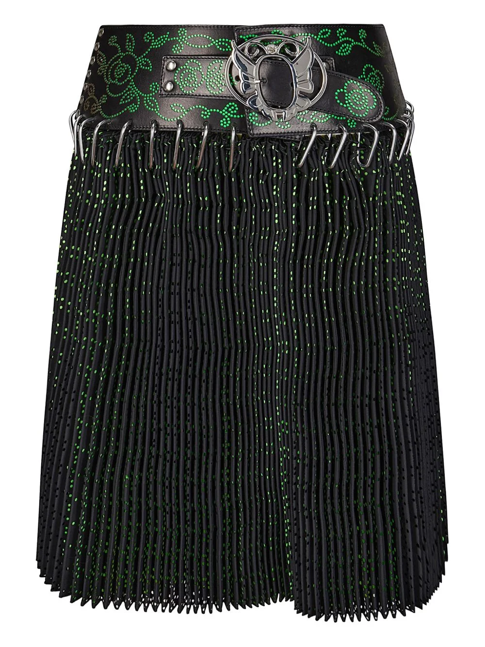 carabiner pleated skirt Highlights - Black - Floral embellishment - Fringed detailing - Buckle fastening - Knee-length Made in United Kingdom Composition Recycled Polyester 100% Washing instructions Read Manufacturer Guidelines