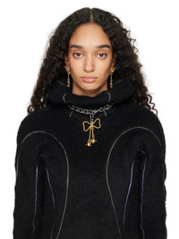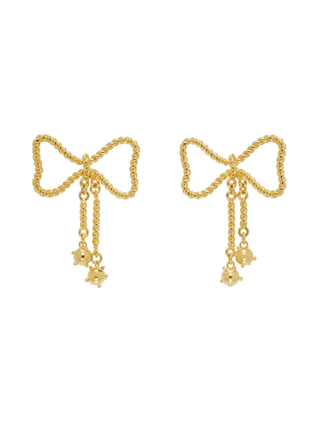 Pair of stud earrings in palladium-plated brass. · Bow accent at face · Graphic charms at drop · Post-stud fastening · H2.5" x W1.75" Supplier color: Multi Platinum, brass. Made in Bulgaria 242529F022007