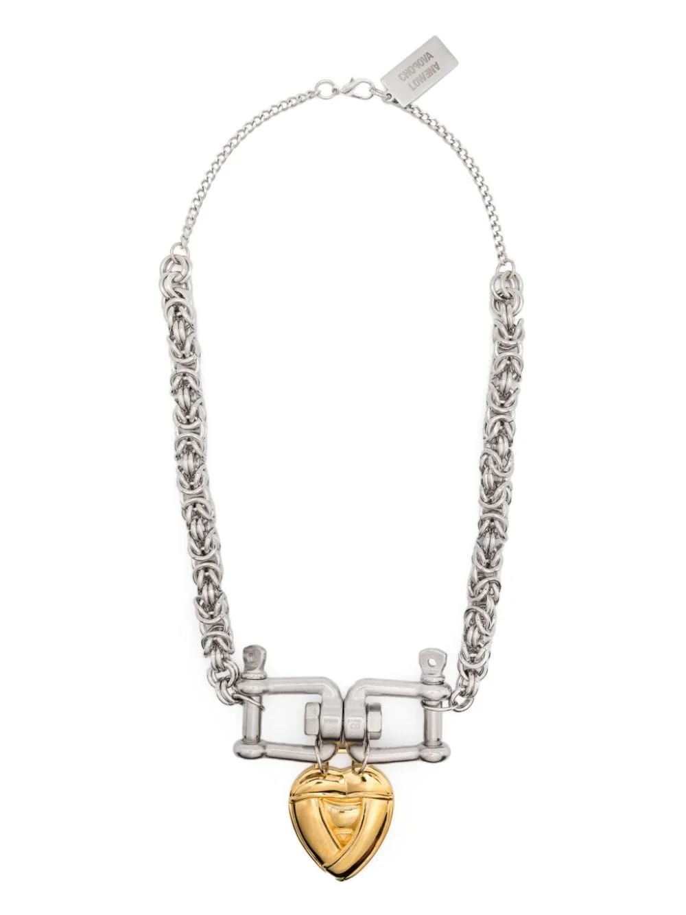 heart-pendant necklace Highlights - Silver-tone - Polished finish - Heart pendant - Chunky cable-link chain - Metallic detail - Logo charm - Lobster claw fastening Imported SIZE & FIT Model measurements Height 5 ft 10 in(1.77 m) Bust/Chest 33.07 in(84 cm) Hips 37 in(94 cm) Waist 24.8 in(63 cm) Measurement Length when open 31.49 in(80 cm) Minimum Length 22.44 in(57 cm) PENDANT LENGTH 2.12 in(5.4 cm) PENDANT WIDTH 1.65 in(4.2 cm) WIDTH 0.47 in(1.2 cm)
