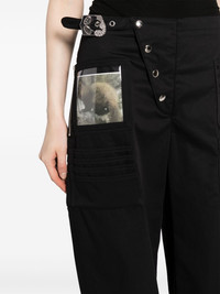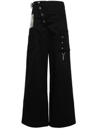high-waisted wide-leg trousers Highlights - Jet black - Bci cotton - Silver-tone hardware - Decorative button detailing - Carabiner attachment - Off-centre front fastening - Press-stud fastening - High-waisted - Wide leg - Front patch pocket - Side flap pocket Imported Composition BCI Cotton 100% SIZE & FIT Model measurements Height 5 ft 11 in(1.8 m) Bust/Chest 31.1 in(79 cm) Hips 36.22 in(92 cm) Waist 25.98 in(66 cm) FittingInformation Designed with a wide-leg cut, these trousers allow for a close fit at the waist and offer a loose and roomy fit over the leg Made from a midweight non-stretch fabric This piece fits true to size – take your usual size Washing instructions Specialist Cleaning
