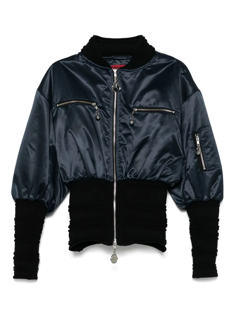 Little Birdy bomber jacket Highlights - Navy blue - Front two-way zip fastening - Padded design - Two zip-fastening chest pockets - Sleeve zip pocket Imported Composition Polyester 100%, Cotton 75%, Polyamide 25% SIZE & FIT Model measurements Height 5 ft 10 in(1.78 m) Bust/Chest 32.67 in(83 cm) Hips 35.43 in(90 cm) Waist 23.22 in(59 cm) FittingInformation Designed to be unstructured, offering a loose fit throughout The elasticated hem allows for movement and a comfortable fit Made from a midweight non-stretch fabric, this piece offers minimal elasticity when worn Washing instructions Machine Wash