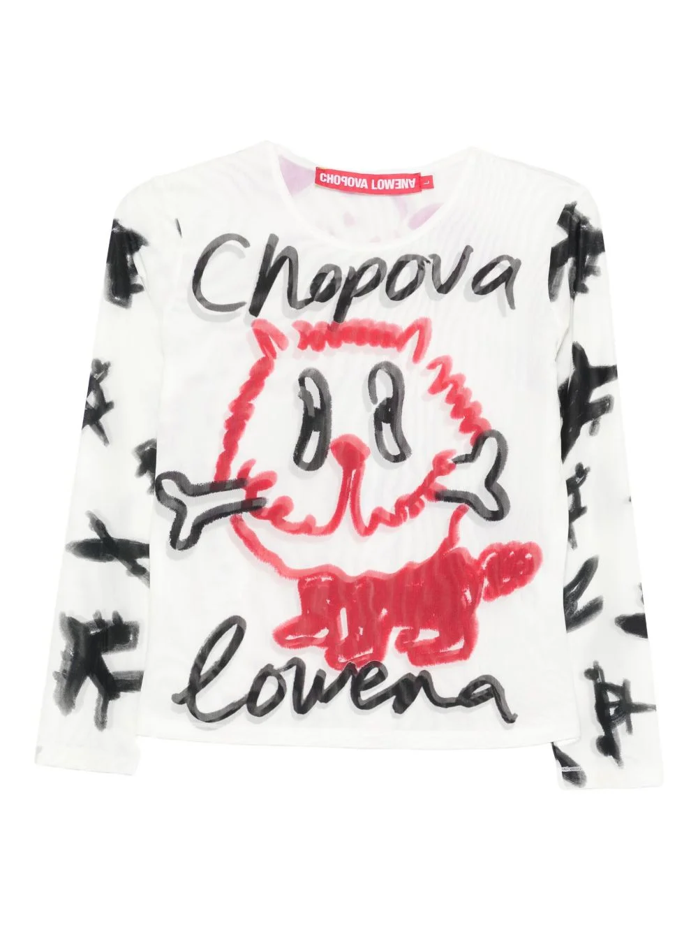 logo-print long-sleeve top Highlights - White - Graphic print - Long sleeves - Crew neck - Logo print - Sheer fabric Imported Composition Recycled Polyester 95%, Elastane 5% Washing instructions Machine Wash