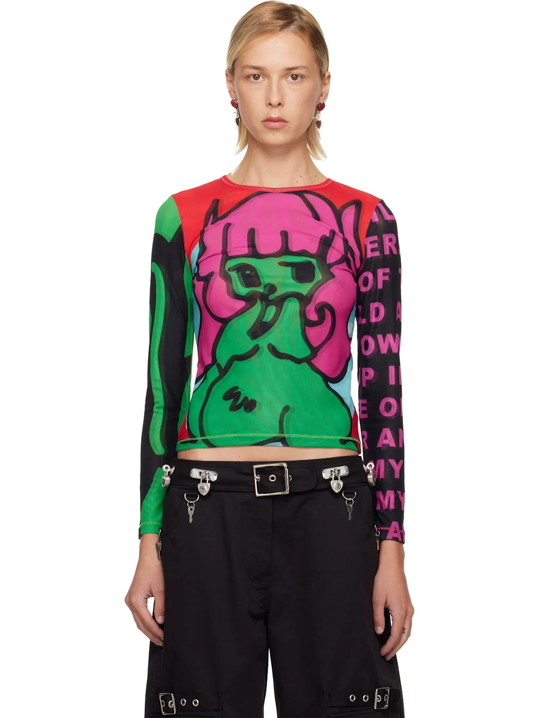 Semi-sheer stretch recycled mesh T-shirt. · Graphics printed throughout · Crewneck · Text printed at sleeve · Fully lined Supplier color: Multi 95% recycled polyester, 5% elastane. Made in Bulgaria 252529F110000
