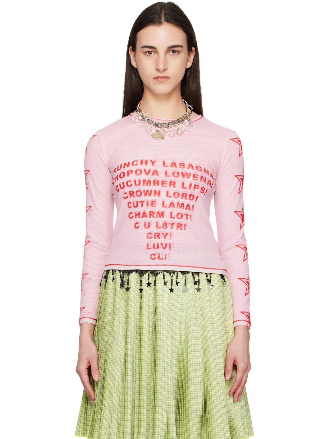 Pink 'Crunchy Lasagna' Fitted Mesh Top