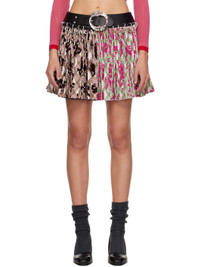 Faille miniskirt. · Pleats, check pattern, and flocked pattern throughout · Detachable belt-style leather waistband with clasps · Concealed bungee-style drawstring at waistband Supplier color: Multi 100% polyester. Made in Bulgaria 252529F090004
