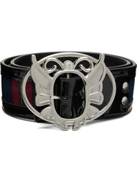 Wool-blend flannel and patent leather belt. · Check pattern throughout · Graphic hardware at pin-buckle fastening · W2" Supplier color: Black multi Body 1: 100% wool. Body 2: 100% leather. Made in Italy 252529F001000