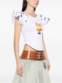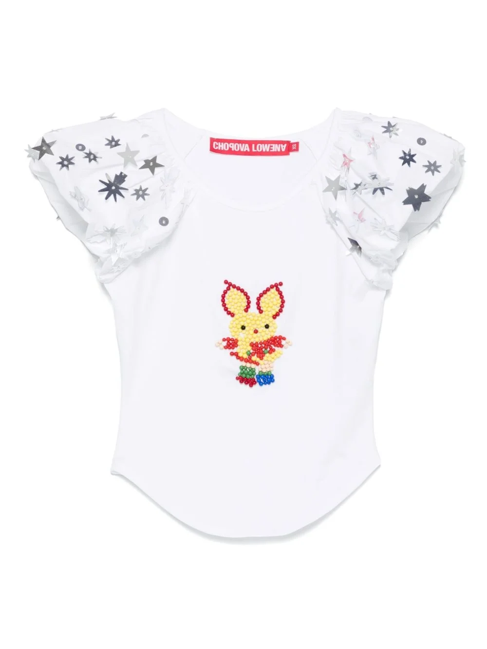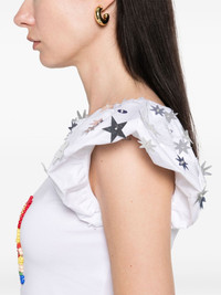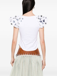 Angelica top Highlights - White - Crew neck - Cap sleeves - Curved hem - Cropped Imported Composition Sequin 100%, Cotton 95%, Lycra 5% SIZE & FIT Model measurements Height 5 ft 10 in(1.78 m) Bust/Chest 33.46 in(85 cm) Hips 36.22 in(92 cm) Waist 23.22 in(59 cm) FittingInformation Designed for a close fit throughout Made from a midweight stretch fabric, this piece offers elasticity and flexibility when worn