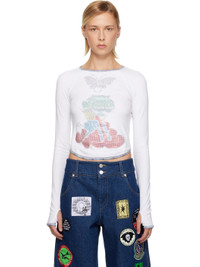 Cotton jersey T-shirt. · Crewneck · Rhinestone graphics at front · Curved hem · Raglan sleeves Supplier color: White 100% cotton. Made in Bulgaria 252529F110012