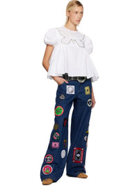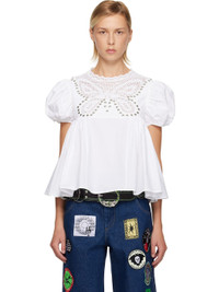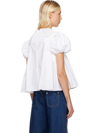 Cotton poplin blouse. · Gathering throughout · Hand-crocheted graphic trim at round neck · Scalloped edge at collar · Puff sleeves · Zip closure at back Supplier color: White Body: 100% cotton. Trim: 100% cotton. Made in Bulgaria 252529F107001