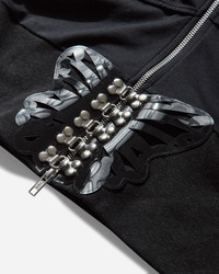 Chopova Lowena Carino Hoodie Black Black fitted zip up hoodie featuring butterfly embellishment with clasp closure, two-way zip closure and side pockets. - 100% Cotton - Slim Fit - Drawstring Hood - Two-Way Zip Closure with Heart Charm - Butterfly Embellishment with Clasp Closure - Two Side Pockets - Ribbed Cuffs and Hem - Style Code: 5261 BLCK
