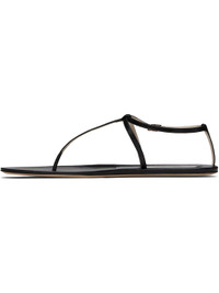 Grained lambskin flat sandals in black. · Open almond toe · Thong-style strap · Pin-buckle ankle strap · Logo patch at footbed · Calfskin nubuck sole Supplier color: Black Upper: lambskin. Sole: calfskin, rubber. Made in France 252382F124000