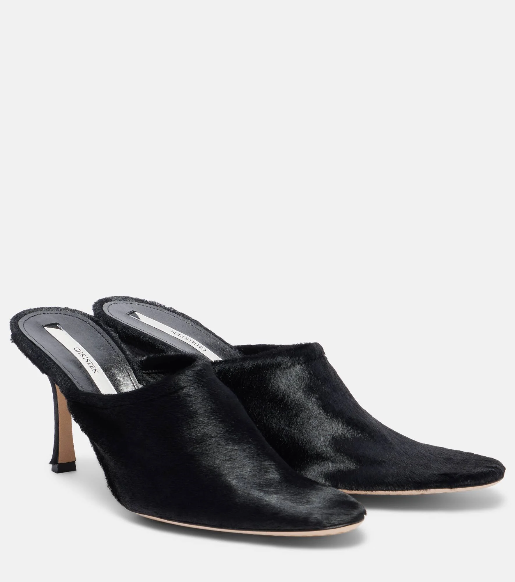 Christen delivers designs that are destined to be part of your everyday rotation for their refined craftsmanship and unique style. The Elipse mules are crafted from soft calf hair and sit atop 75mm heels. Product Details - Upper: calf hair - Lining: fabric - Sole: leather insole and sole - Toe shape: almond toe - Made in Italy - Includes: dust bag, shoe box - Designer color name: Black - Item color: black - Item number: P01116173 Size & Fit - Fits large to size - we recommend trying one size smaller - European sizes - 7,5cm-3" heel (size EU 38)