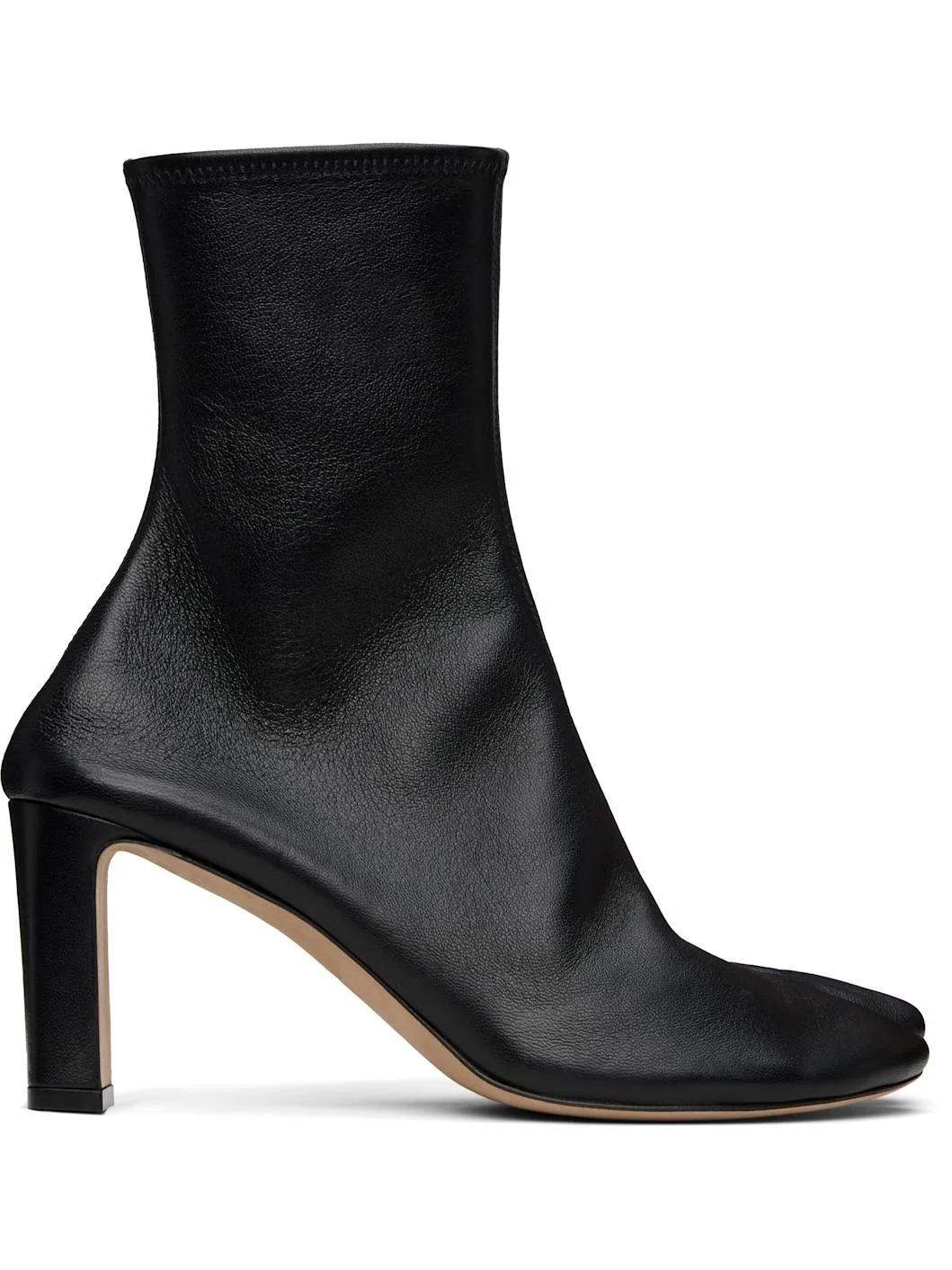 Ankle-high grained nappa lambskin boots in black. · Square cleft toe · Elasticized collar · Zip closure at inner side · Jersey lining · Covered block heel with rubber injection · Calfskin nubuck sole · Heel: H3" Available exclusively at SSENSE. Supplier color: Black Upper: lambskin. Sole: calfskin, rubber. Made in France 252382F113000