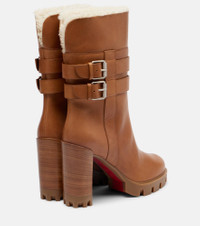 The Elisawalk ankle boots from Christian Louboutin are made in Italy from leather and feature shearling insoles, 100mm heels, and silver-toned buckles. Finished with the brand's iconic red soles, this pair makes every step you take a sophisticated one. Product Details - Upper: calf leather - Lining: shearling - Sole: shearling insole, rubber sole - Toe shape: round toe - Made in Italy - Includes: shoe box, dust bag - Designer color name: Terra/Lin Terra/Noce Luc - Item color: beige - Hardware color: silver - Closure: buckle fastening - Item number: P01119981 Size & Fit - True to size - European sizes - 10cm-4" heel - 2cm-1" platform