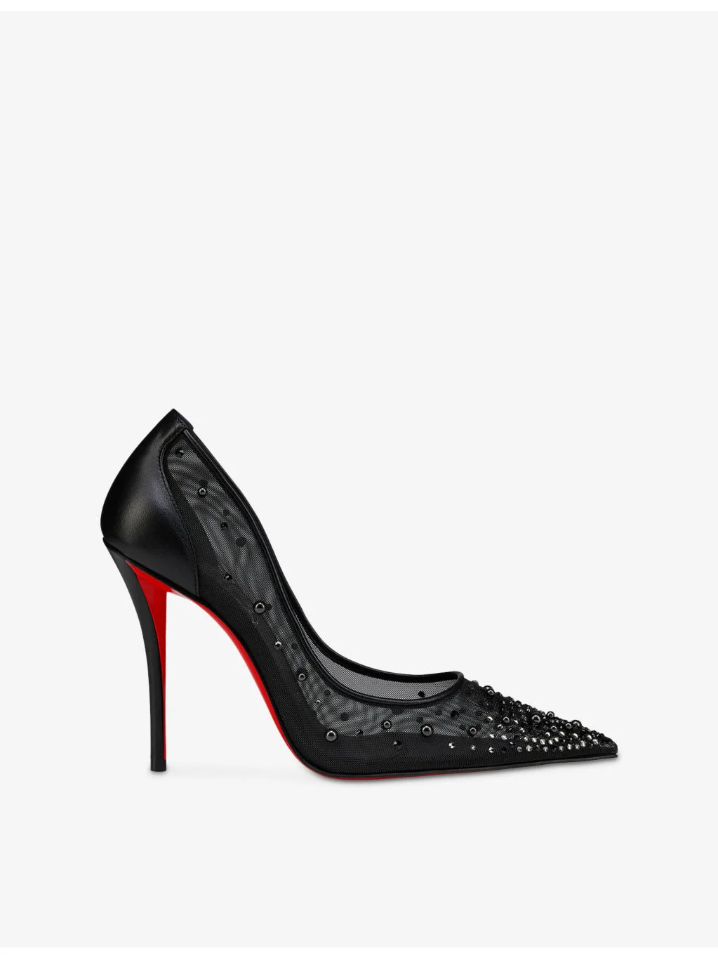 PRODUCT DETAILS - 63% Polyamide, 37% lambskin leather - Heel height: 3.6in / 100mm - Made in Italy - True to size - This style features an 'Everlasting red sole,' thanks to an innovative coating technique that ensures resistance and lasting vibrancy for the signature Louboutin red. - Christian Louboutin strongly recommends that its customers consult a professional in leather care or a shoemaker for specific care advice. In order to keep your shoes in good condition, the following leather care is recommended: - Keep the leather area clean and dry using a dry, soft cloth - Always store your products away from light and heat - Protect your leather goods from rain and moisture - Store your products in the Christian Louboutin dust bag provided - Avoid contact with abrasive surfaces - Regrettably we are unable to accept in-store returns on Christian Louboutin orders - PLEASE NOTE: Due to the delicate nature of the red soles we ask that the shoes be tried on carpeted flooring. If not, they may not be suitable for return Ref: R04556457