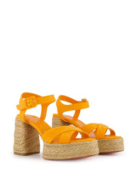 70mm Calakala espadrilles Highlights - Lava orange - Calf suede - Crossover strap at the toe - Almond open toe - Buckle-fastening ankle strap - Branded footbed - Mid block heel - Braided raffia platform - Rubber sole Made in Italy Composition Suede 100% SIZE & FIT Measurement HEEL 3.34 in(8.5 cm)