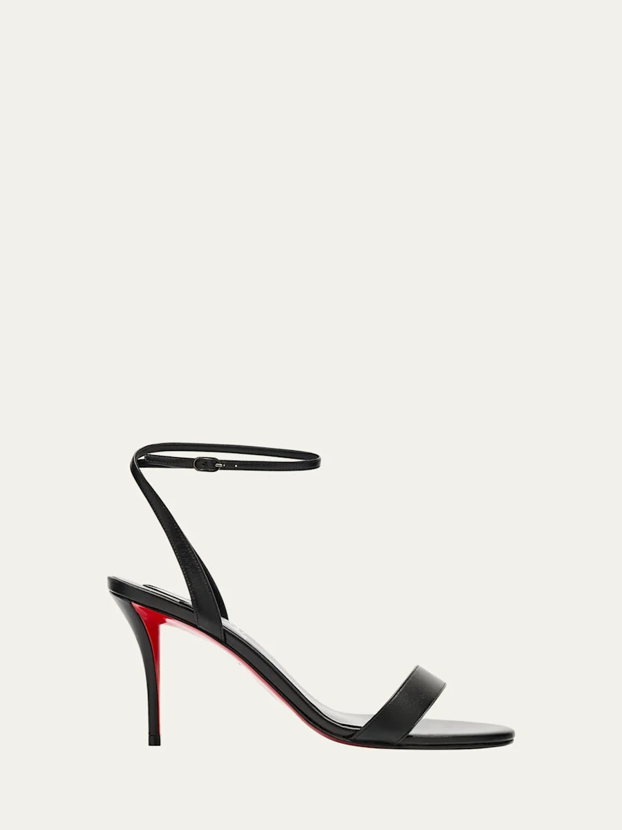 Christian Louboutin "Miss Z" smooth leather sandals 3.15 in / 80 mm stiletto heel Open toe Adjustable ankle strap Signature red leather outsole Made in Italy