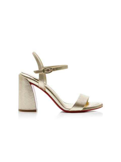 His shoes are instantly recognizable, innately covetable and fashion-industry famous. Lest you get caught up in the cachet, it should be noted that each accessory is very much the sum of its incredible parts. Meticulously crafted in Italy from metallic nappa leather, the 'Miss Jane' sandals feature a diagonal toe strap and a signature Turela block heel. The comfortable ankle strap and lightly cushioned sole make them ideal for all-day wear. PRODUCT DETAILS - Heel height measures approximately 85mm/ 3.35" - Buckle fastening - Composition: nappa leather - Imported