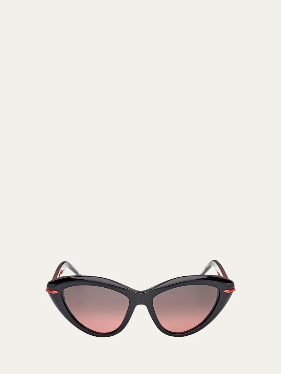 Christian Louboutin cat-eye sunglasses in acetate Eye/bridge/temple (in mm): 56-17-135 Gradient lenses Saddle nose bridge Thin, tapered arms Logo at lens Acetate Spot clean 100% UVA/UVB protection Made in Italy Proposition 65 warning for California residents Online Inquiries: BGS21_D59GA| Store Inquiries: #5028801