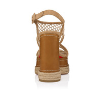 Confirming Maison Christian Louboutin's 'savoir-faire', the Almeja sandal revisits the espadrille-style woven sole. Set on a 130 mm square heel, it combines Lionne brown fishnet and Terra suede calf leather. Fastened at the ankle with a clasp, this summer style elegantly reveals the toe. Product information Reference: 1250860F807 Color: Lionne Material: Mesh and waxed calf leather Heel Height: 130 mm