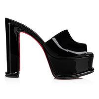 The enchantingly architectural Amali Mule Alta showcases Maison Christian Louboutin's creativity. This platform shoe sits on a 130 mm heel. It is dressed in black patent leather for a glossy appeal. Product information Material: Patent leather Color: Black Reference: 3230405B439 Heel height: 130 mm Collection: Fall Winter 23
