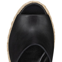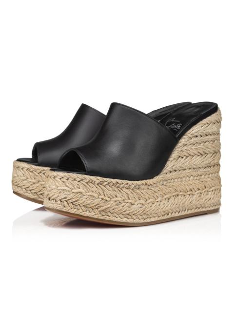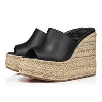 An audacious twist on the espadrille, the Arielle Zeppa sandal has an elegant appeal. This Maison Christian Louboutin model is set on a 130 mm heel. It has a braided wedge heel in natural rope and is dressed in black leather for a sophisticated finish. Product information Material: Calf leather Color: Black Reference: 3230184T339 Heel height: 130 mm Collection: Fall Winter 23