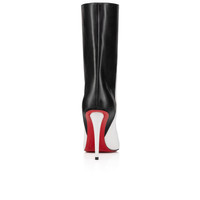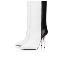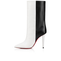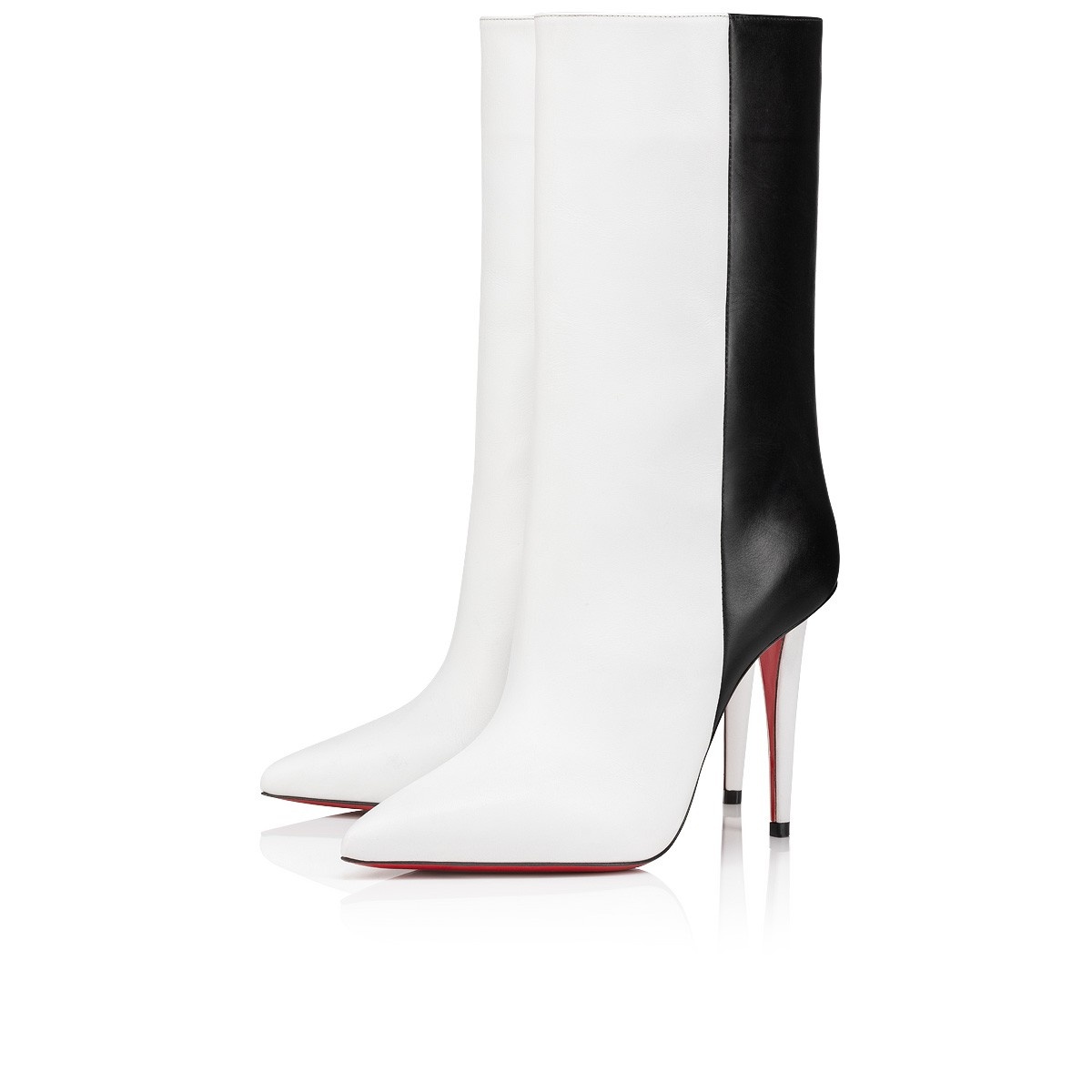 Showcasing Maison Christian Louboutin's creativity, the Astrilarge Booty has a 100 mm architectural stiletto heel built directly into the sole. This original boot rises just above the ankle and is crafted in black and white calf leather for a graphic retro appeal. A sophisticated, urban design with sleek lines and a pointed toe. Product information Material: Calf leather Color: Bianco Reference: 3230824Q254 Heel height: 100 mm Collection: Fall Winter 23