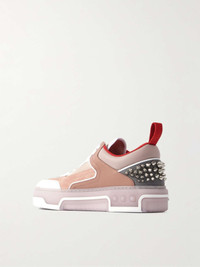 EDITORS'NOTES Inspired by '90s streetwear, Christian Louboutin's 'Astroloubi' sneakers are modeled on both basketball and skater styles. This pair is made from leather and suede and embellished with silver-tone spikes. The tonal-pink colorway lends a cool contrast to the signature red soles. SIZE & FIT - Fits true to size, take your normal size - Italian sizing DETAILS & CARE - Rubber sole measures approximately 40mm/ 1.5 inches - Tonal-pink, gray and white leather, pink suede and mesh (Calf, Lamb) - Lace-up front
