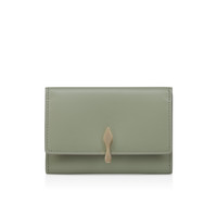 The sophisticated Bettina trifold card holder combines sleek lamb nappa leather in Haiiro Green with practical sophistication. Constructed with useful flat pockets and slots to keep cards and receipts organized, this Maison Christian Louboutin model is adorned with a gold clasp evocative of the iconic Louboutin sole, completing the detail. - Snap button fastening - 2 flat pockets - 5 card slots - Dimensions: - H 3.5 x L 4.5 x W 0.8 inches - H 9 x L 11.5 x W 2 cm Product information Reference: 1265045E835 Color: Haiiro Material: Calf leather Dimensions: 90mm x 115mm x 20mm