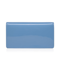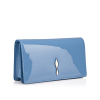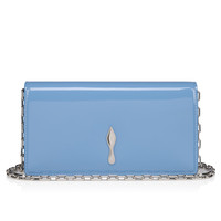 The sophisticated Bettina clutch features a silver embellishment on the front, evoking the silhouette of the iconic sole. This signature model from Maison Christian Louboutin is entirely crafted in Ceruleo blue glossy patent calf leather. - A 44.9-inch/114 cm chain strap allows it to be carried by hand or over the shoulder - Magnetic button fastening - 1 main compartment - 1 flat inside pocket - 3 card slots - Dimensions: - H 4.7 x L 8.7 x W 2 inches - H 12 x L 22 x W 5 cm Product information Reference: 12650804396 Color: Ceruleo Material: Patent calf leather Dimensions: 120mm x 220mm x 50mm