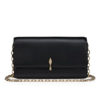 An iconic Maison Christian Louboutin model, the Bettina wallet on a chain boasts sophistication. Adorned on the front with a gold metal clasp evoking the silhouette of the iconic sole, this elegant model is made entirely from smooth black lamb nappa leather. The nappa leather, with its semi mat aspect and slightly visible natural grain, exudes quality and offers a timeless and sophisticated look. - 1 x 41.7 inch / 106 cm removable metal chain for hand, crossbody, or shoulder carrying - Magnetic button fastening - 1 main compartment - 1 flat pocket - 3 card slots - Dimensions: - H 4.7 x L 7.5 x W 1.6 inches - H 12 x L 19 x W 4 cm Product information Reference: 1265040CM6S Color: Black Material: Lamb nappa leather Dimensions: 120mm x 190mm x 40mm