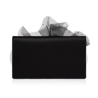 The sophisticated Bettina clutch features a silver embellishment on the front, evoking the silhouette of the iconic sole. This signature model from Maison Christian Louboutin is entirely crafted in black crepe satin and is ideal for nights out. Delicately draped in soft tulle, the clutch is elevated by hand-placed strass that highlight the tulle and is the perfect accessory for a bold, refined look. This clutch can be matched with the Doria Offenbee. - A 44.9 inch / 114 cm chain strap allows it to be carried by hand or over the shoulder - Magnetic button fastening - 1 main compartment - 1 flat inside pocket - 3 card slots - Dimensions: - H 4.7 x L 8.7 x W 2 inches - H 12 x L 22 x W 5 cm Product information Reference: 1265116BK65 Color: Black Material: Crepe satin Dimensions: 120mm x 220mm x 50mm