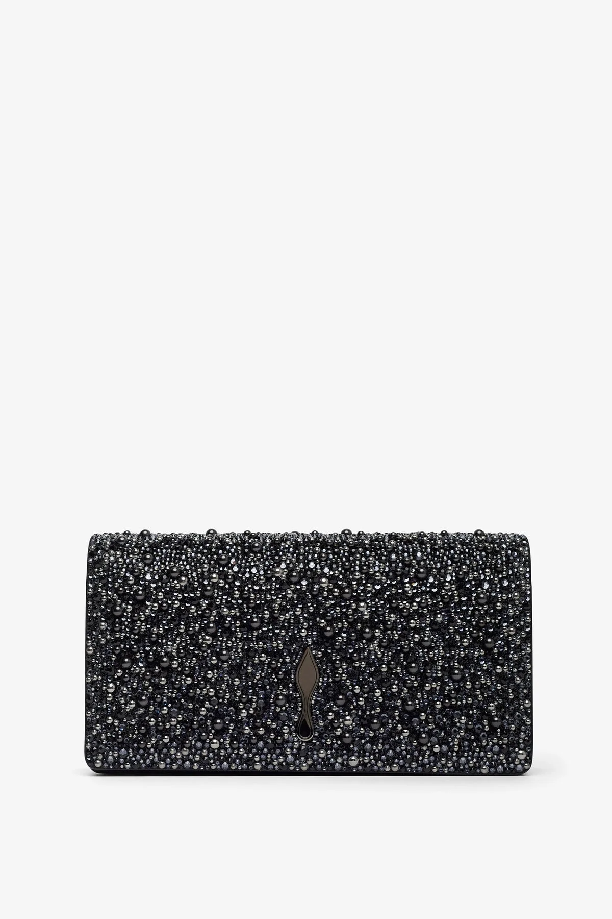 Black strass clutch bag from Christian Louboutin. The Bettina clutch bag is made in shimmering strass and pearl-embellished suede. It is finished with a hardware detail inspired by the iconic sole, offering multiple internal pockets and a detachable chain strap. - Measurements: L22 x H12 x D5 cm - Strap length: 114 cm - Made in Italy Product Code: 1265083-B078