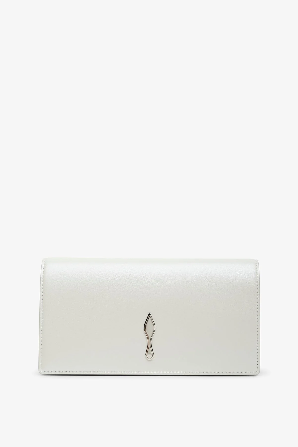 Ivory leather clutch bag from Christian Louboutin. The Bettina clutch bag is made in ivory leather in an elegant envelope shape and adorned with the label's silver-toned logo. It is complete with a detachable silver-toned shoulder strap. - Measurements: L22 x H11 x W4.5 cm - Made in Italy Product Code: 1265192-CM3S