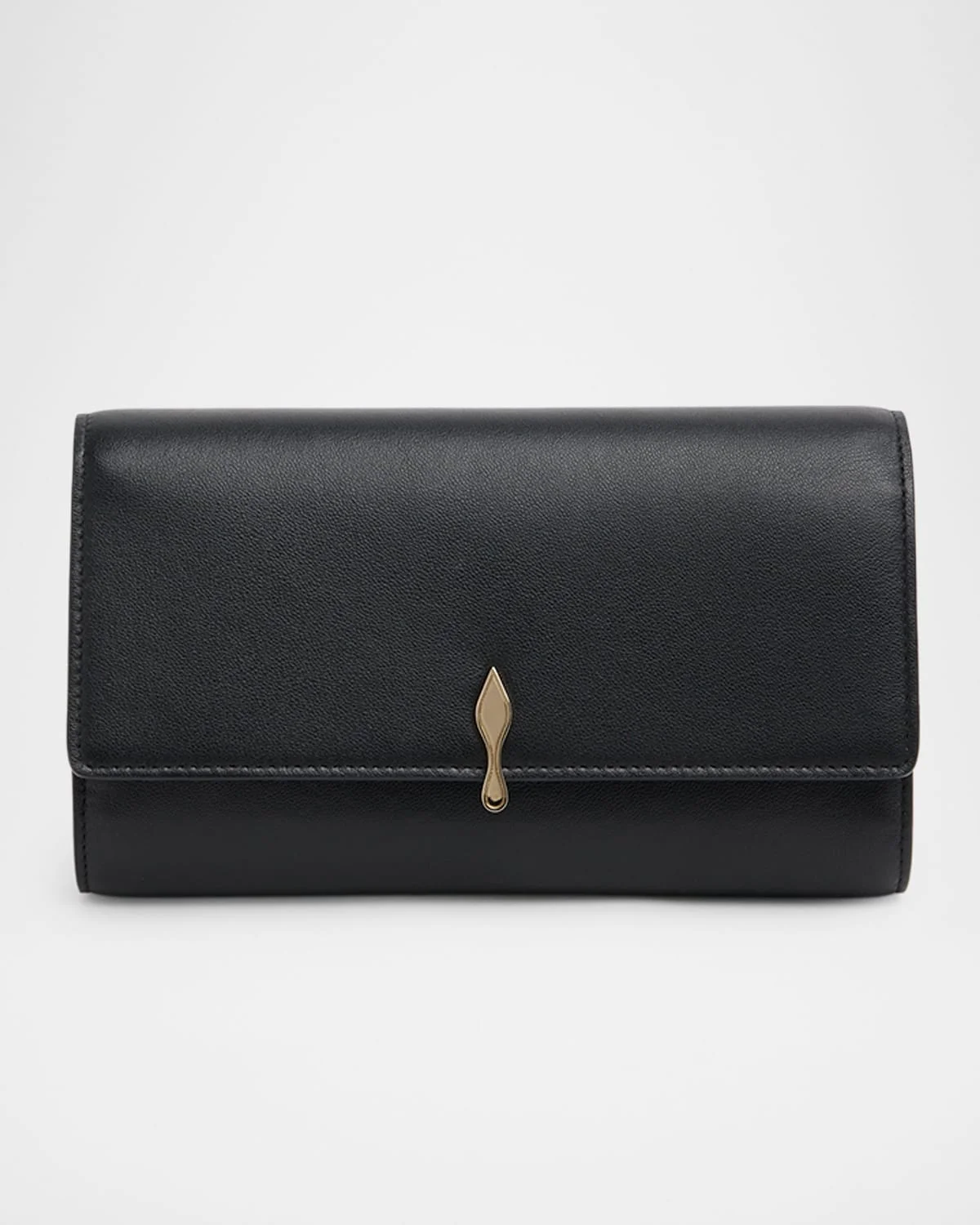 This Christian Louboutin "Bettina" wallet is crafted in semimatte nappa lambskin leather with a signature sole icon accent Detachable chain shoulder strap Can be worn as a wallet, clutch, or shoulder bag Flap top with magnetic closure Interior, three card slots Signature red interior Approx. 4.7"H x 7.5"W x 1.6"D Made in Italy