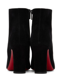 Ankle-high calfskin suede boots in black. · Pointed toe · Zip closure at inner side · Buffed leather and suede lining · Covered block heel with rubber injection · Signature red leather sole · Heel: H3.25 in Supplier color: Black