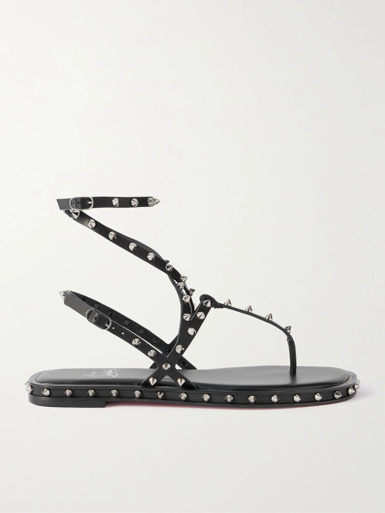 Christian Louboutin's 'Bombina' sandals are inspired by gladiator styles, but with the house's iconic twist. They're made in Spain and have leather straps that are embellished with silver-tone studs. The soles are lacquered with a recognizable splash of red.